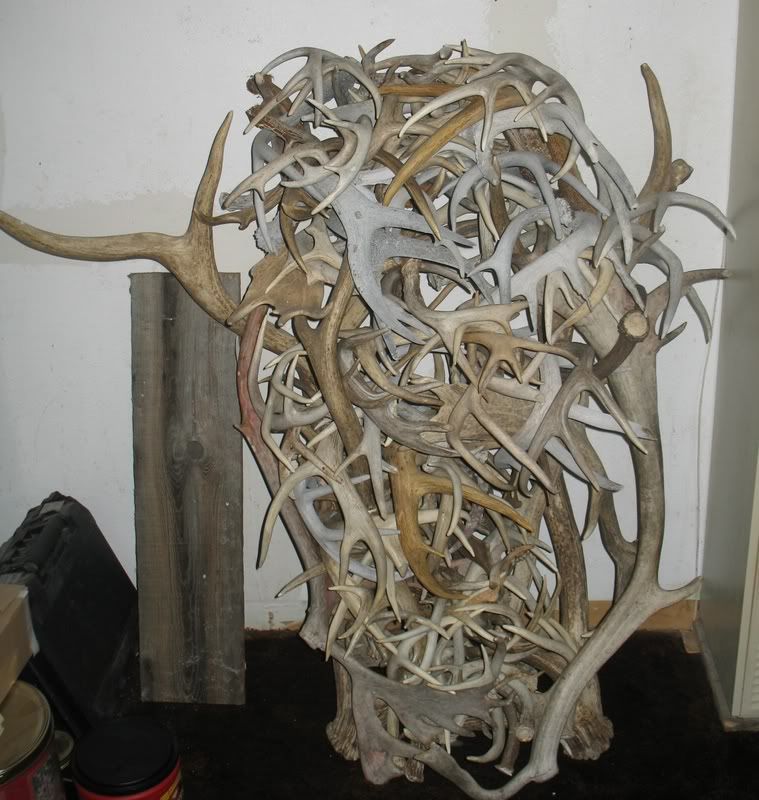 Well instead of robbing someones post,I'll start my own..I haven't been on for awhile..Was an avid shed collector for years,while living in Montana and North Dakota,plus finds in Canada too.......I down size every four years or so and the cash buys me rifles,motor bikes and this go around a new gun safe. I did keep my good stuff and rare finds...I have elk,mule deer,whitetail,reindeer,moose,caribou,red stag,fallow,buffalo(old) and pronghorn...A few skulls too...The skulled elk are my brothers from his hunts in Montana(all bow kills),he gave them to me...