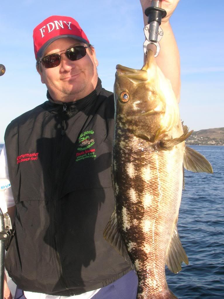 Pardon the fat guy but this is my morning glory. Notice the beautiful golden color shimmering in the early winter morning sunrise. You can tell it's sun-up by the shadow of the bass. Hooked up right as the first rays of light pierced the morning sky. He was all wrapped up in the kelp and it took forever to work him out of it. One of the longest battles with a calico bass i've ever had. Hey...they can't all be skyline photos right? Yes, he was released, as they all are.